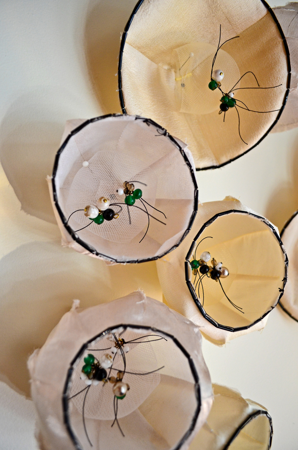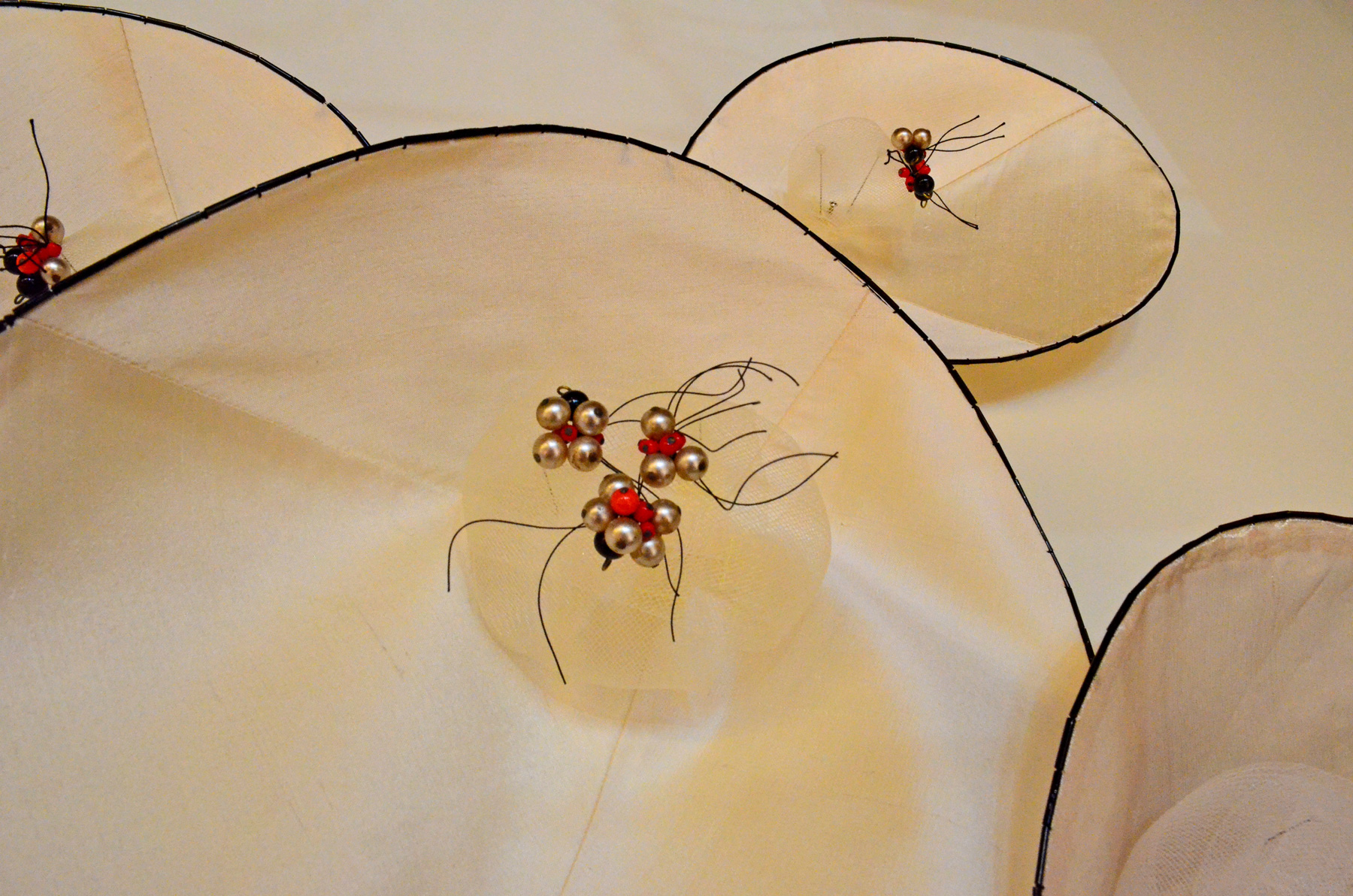 silk, wire, glass beads, crinoline